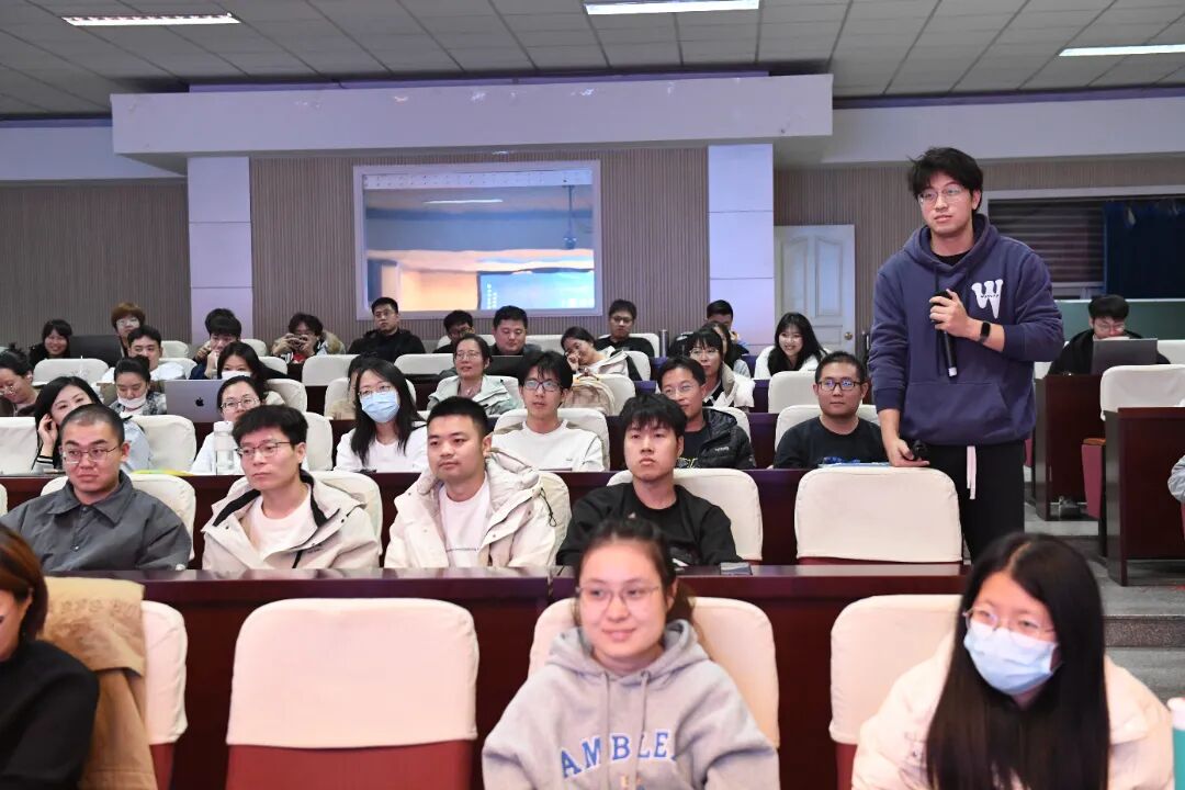 在互动讨论环节,学生们围绕个人职业发展与行业应用展开提问,涵盖财务如何应对数智化挑战等与个人职业发展、行业应用相关的问题,三位嘉宾就大家提出的问题结合具体案例给出了针对性的建议,让同学们更清晰地认识到数智化背景下人才的核心需求要点,对职业发展路径的规划也有了更新的认识。