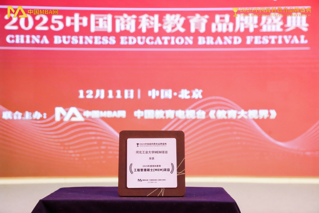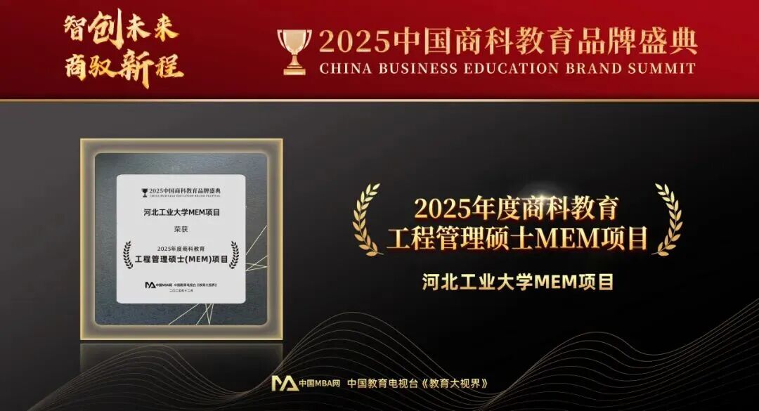 河北工业大学MEM项目荣获“2025年度商科教育工程管理硕士MEM项目”奖。