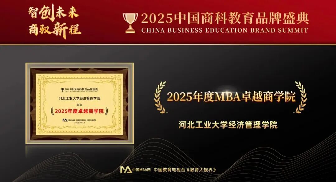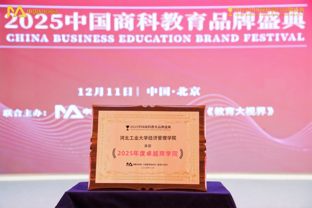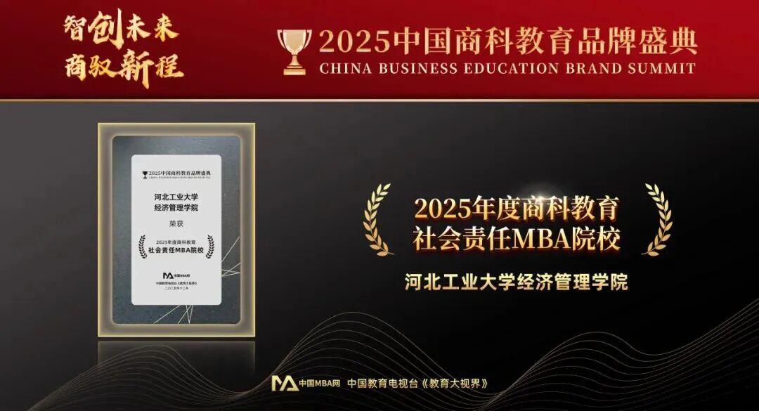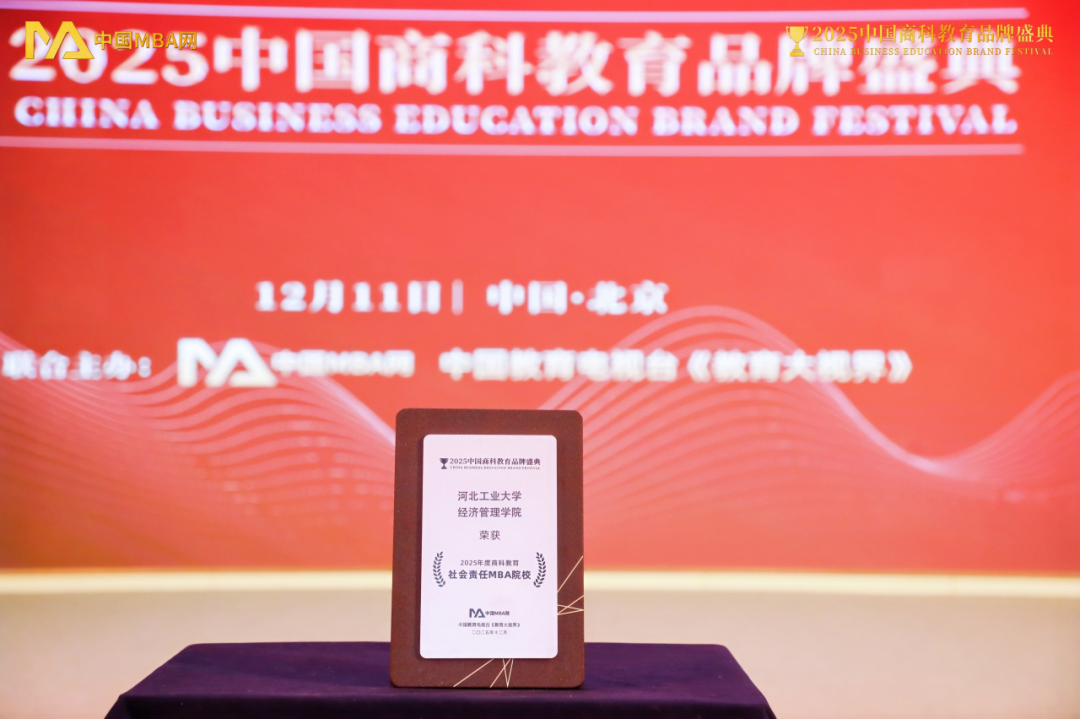 河北工业大学经济管理学院荣获“2025年度商科教育社会责任MBA院校”。