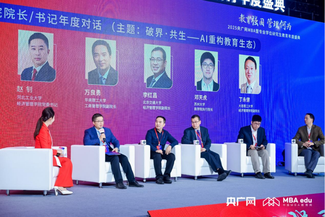 近日,由中央广播电视总台央广网主办,中国MBA教育网承办的“教育强国 管理何为——2025央广网MBA暨专业学位研究生教育年度盛典”在北京隆重举办。来自全国100多所商学院的200多位领导嘉宾、专家学者齐聚一堂,共商教育强国大计,共同书写管理教育事业的新篇章。本次盛典包含主旨演讲、商学院院长/书记年度对话、中心主任年度对话、2025年度商科教育优秀案例发布等环节。河北工业大学经济管理学院党委书记赵钊、专硕中心执行主任刘晓晶应邀出席盛典。