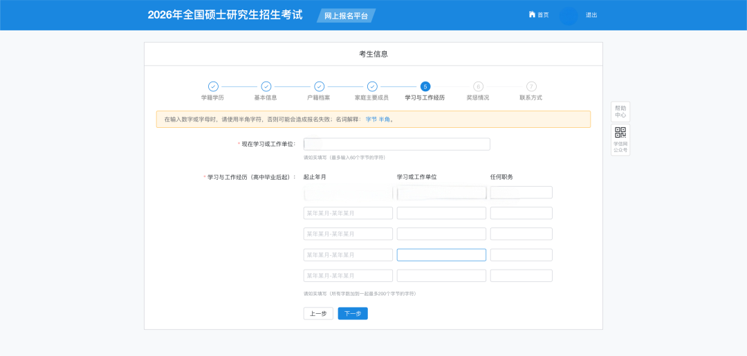 学习与工作经历从高中毕业后起开始如实填写,注意字数限制。