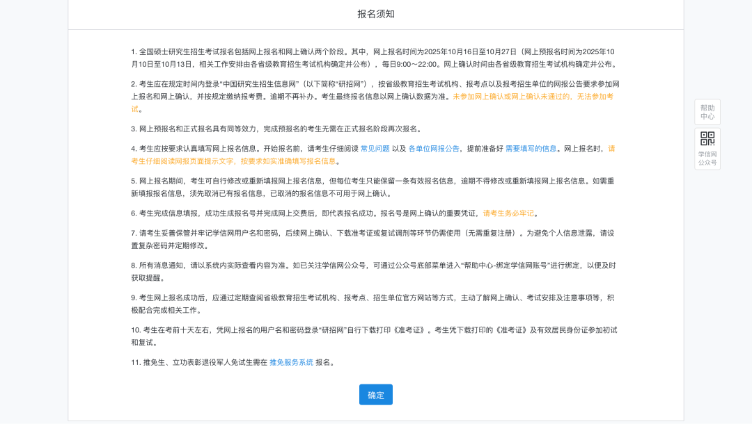 2. 请仔细阅读报名须知的所有内容,若无异议,点击下方“确认”按钮进入下一步。