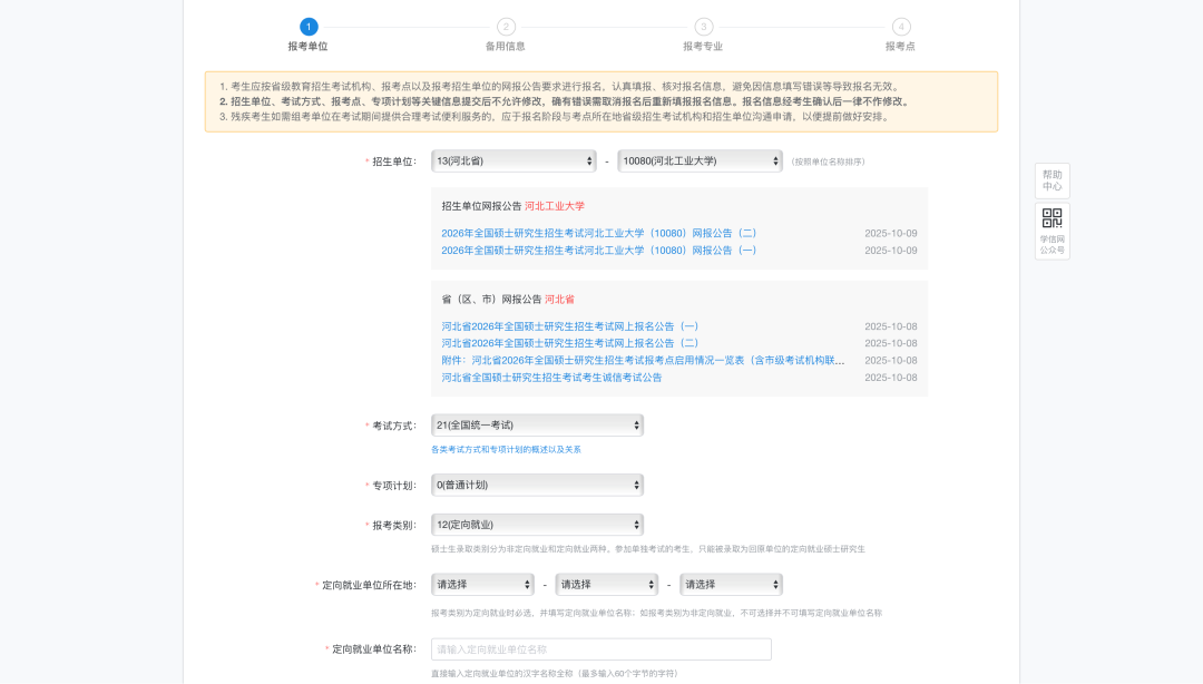 2. 填写报考信息(网上预报名时间为2025年10月10日至10月13日,网上报名时间为2025年10月16日至10月27日每日9:00~22:00)
